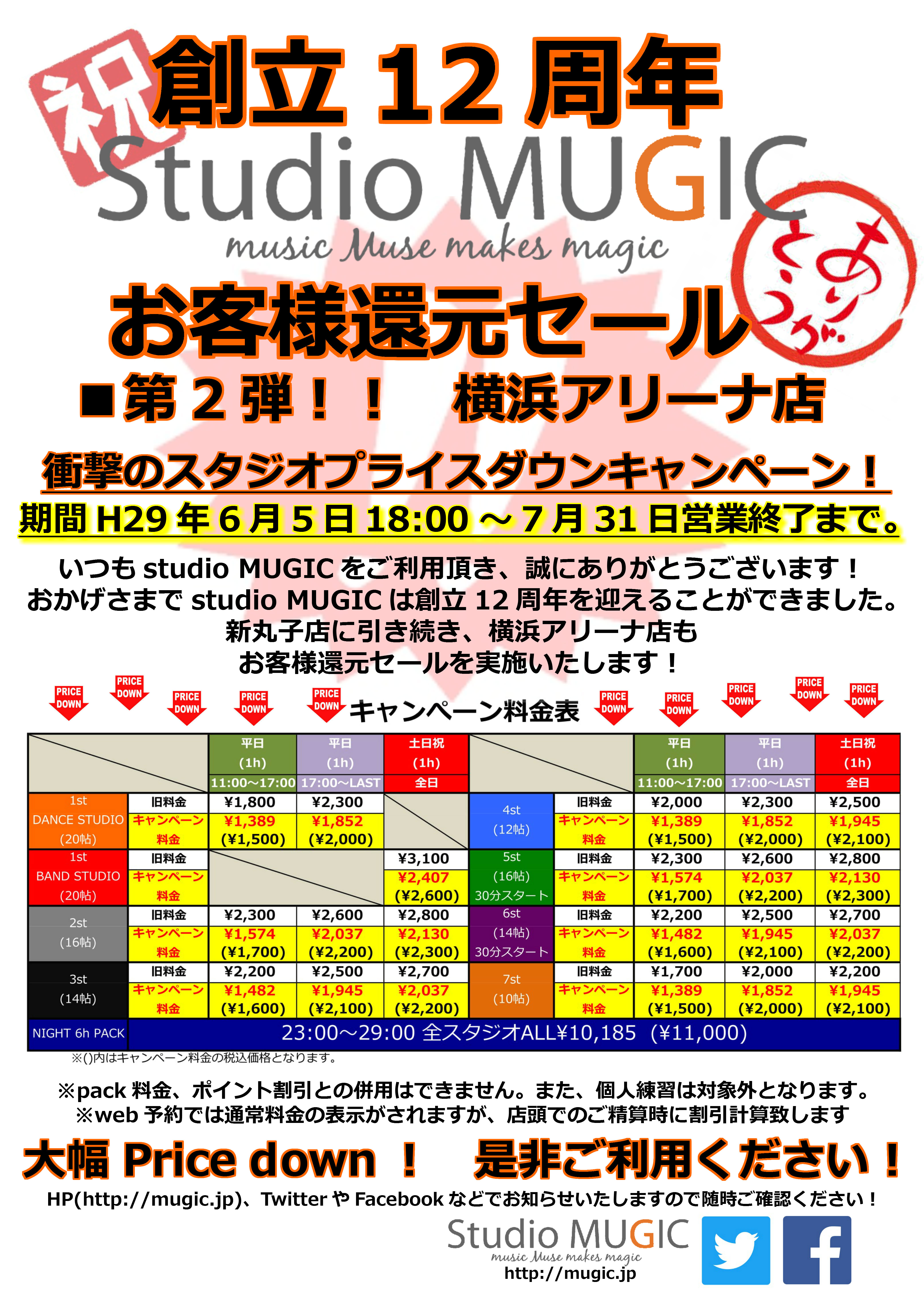 studio MUGIC横浜アリーナ店、お客様還元セール実施のお知らせ