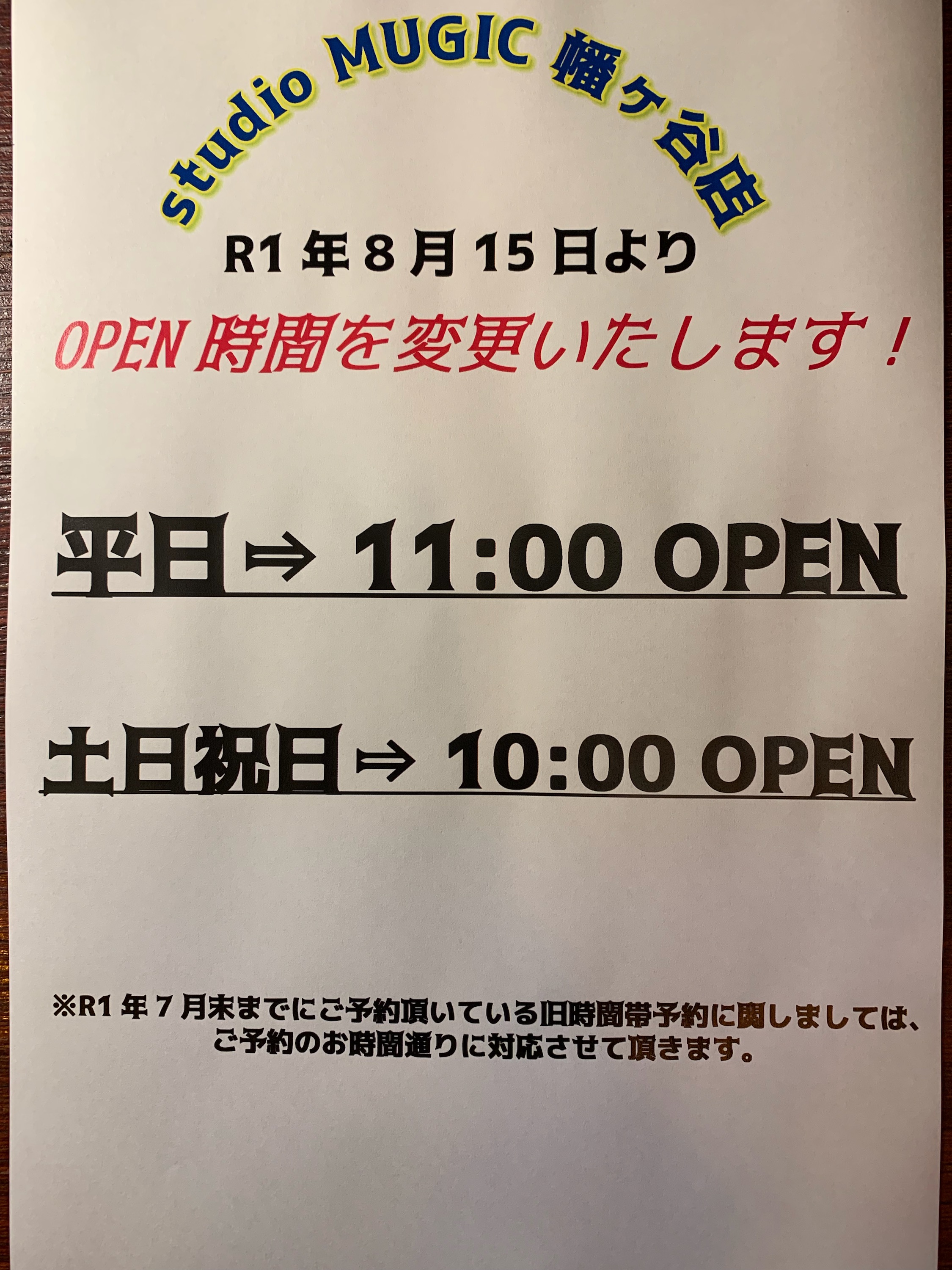 幡ヶ谷店OPEN時間変更のお知らせ