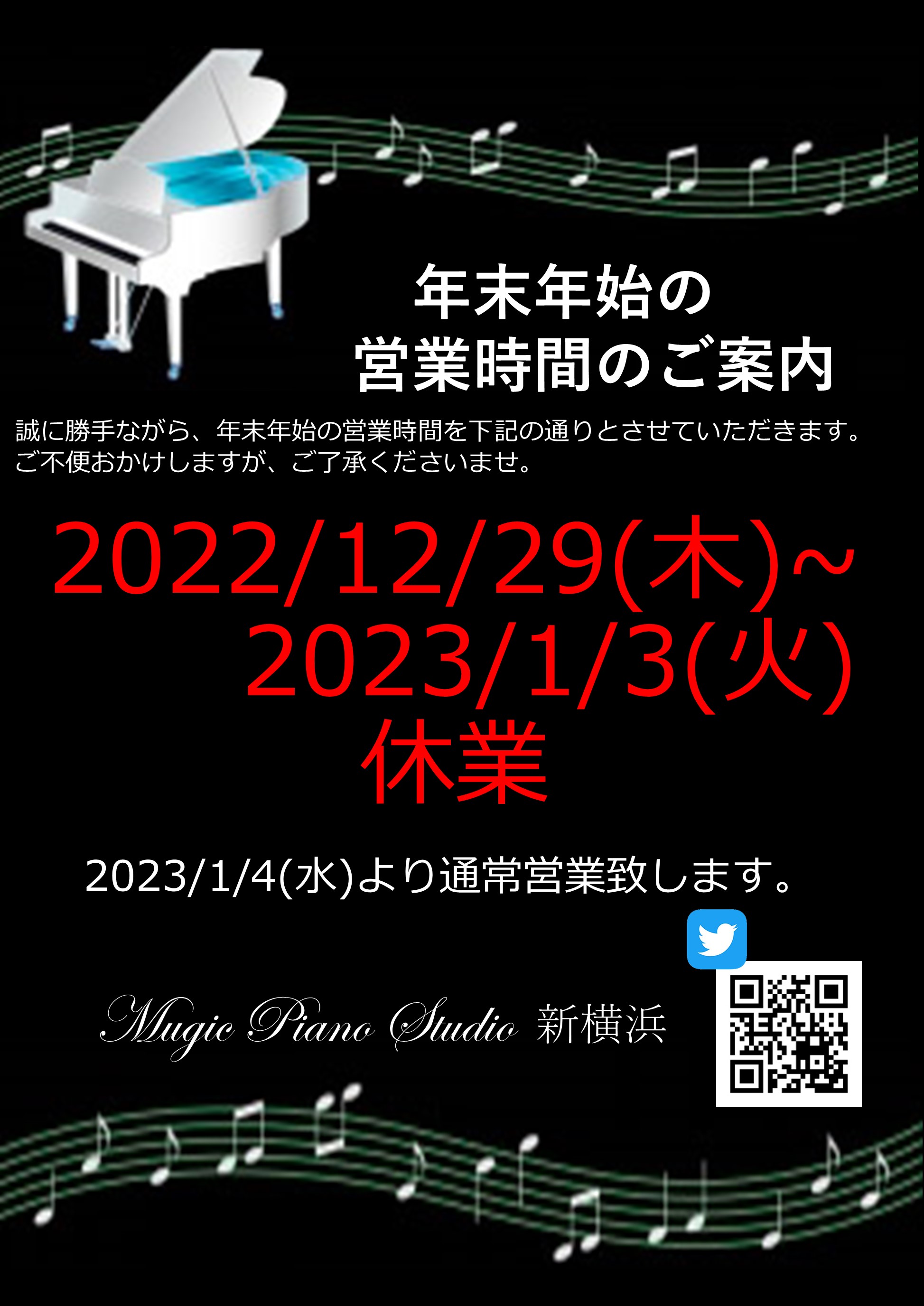年末年始の営業時間のご案内