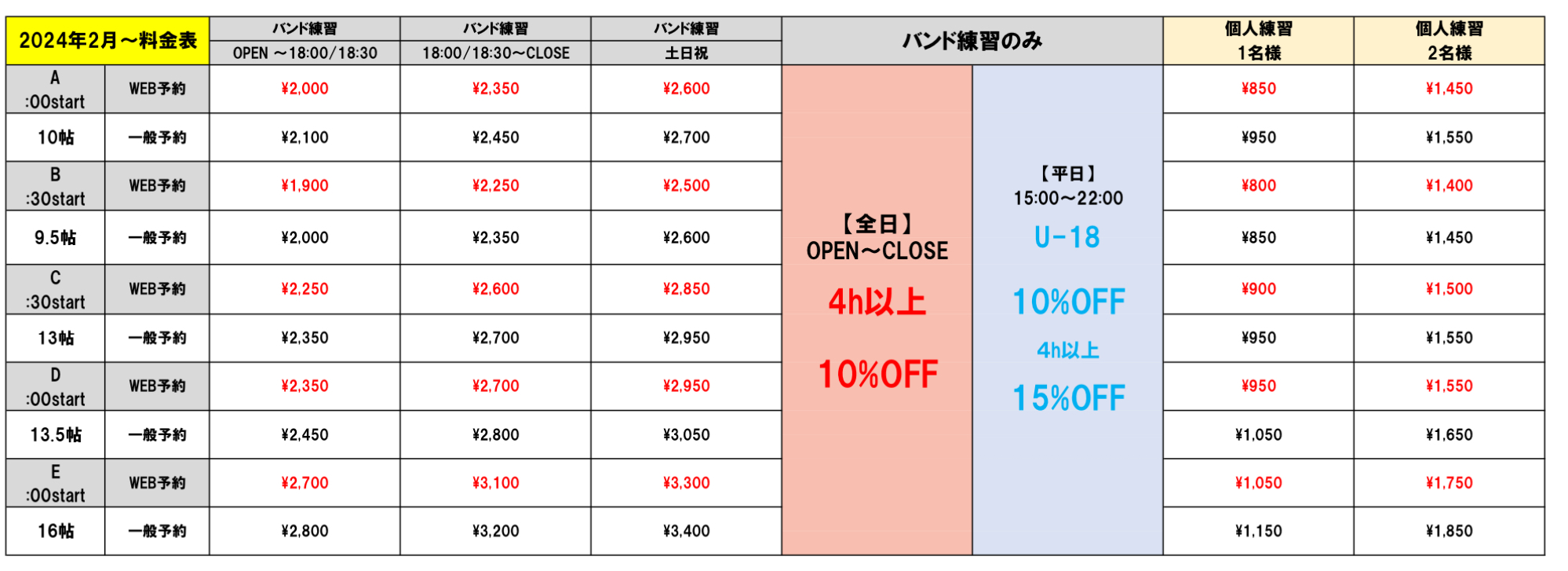 2024年2月価格表