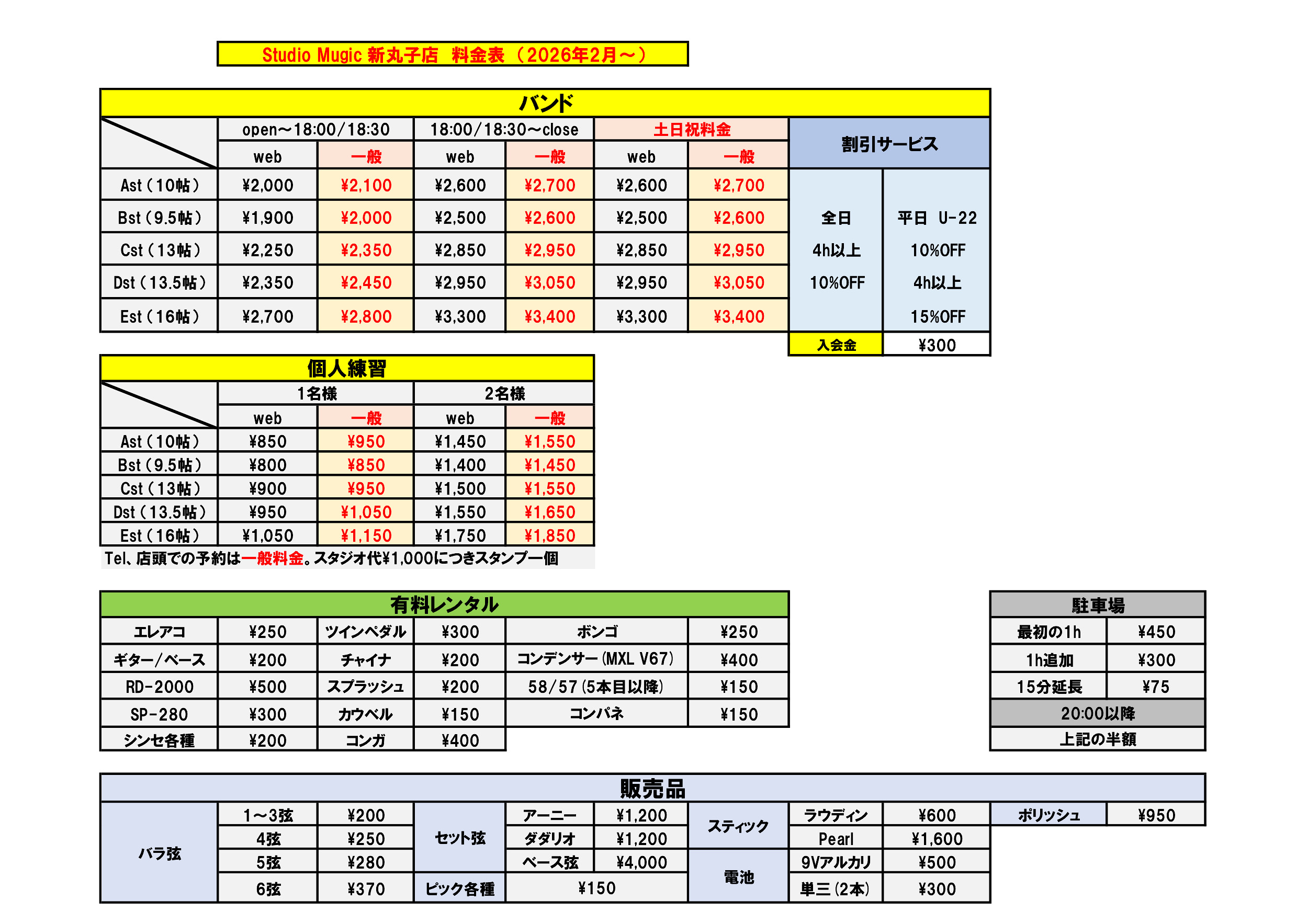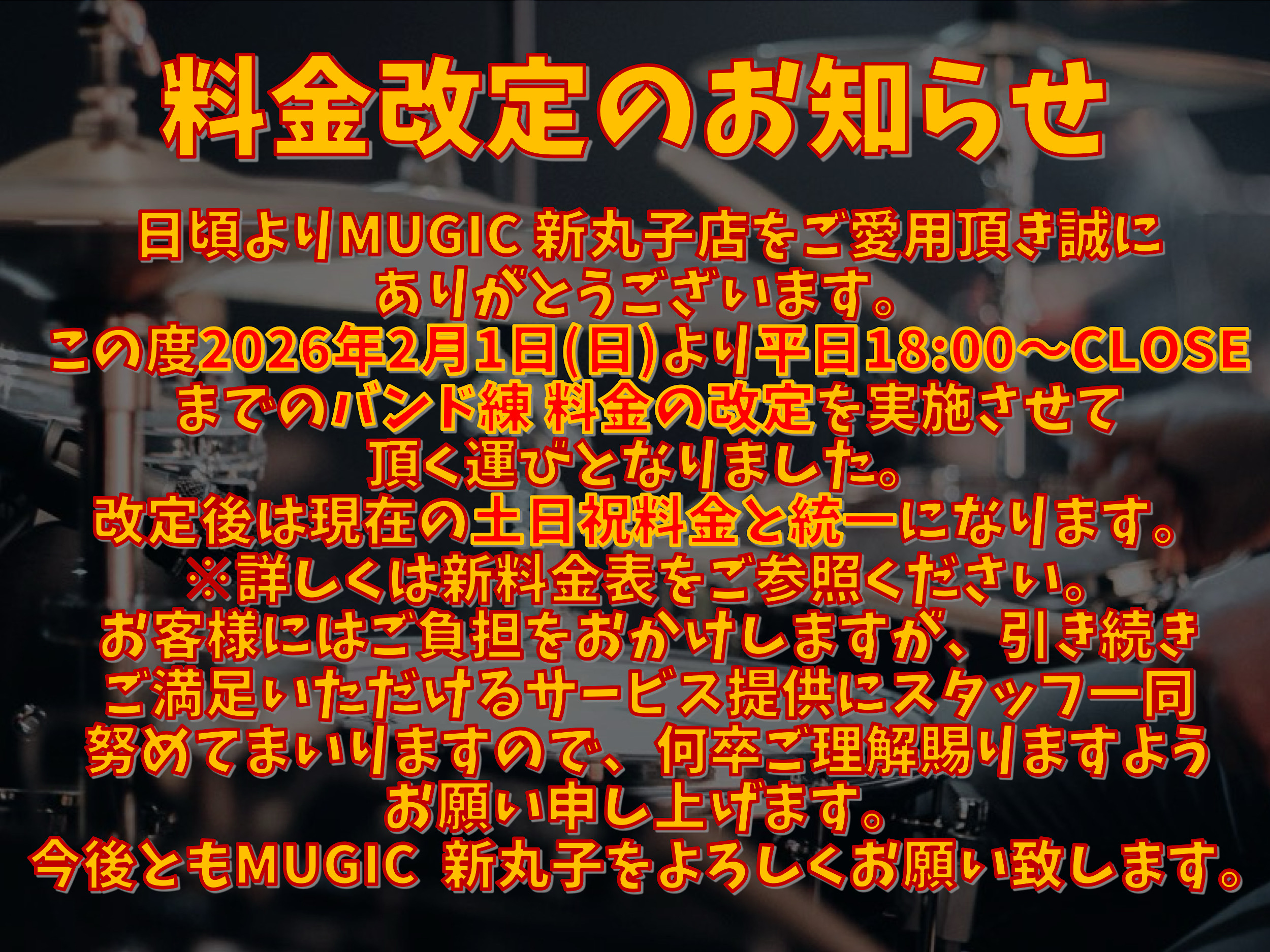 【2026年2月~ 平日 料金改定実施のお知らせ】