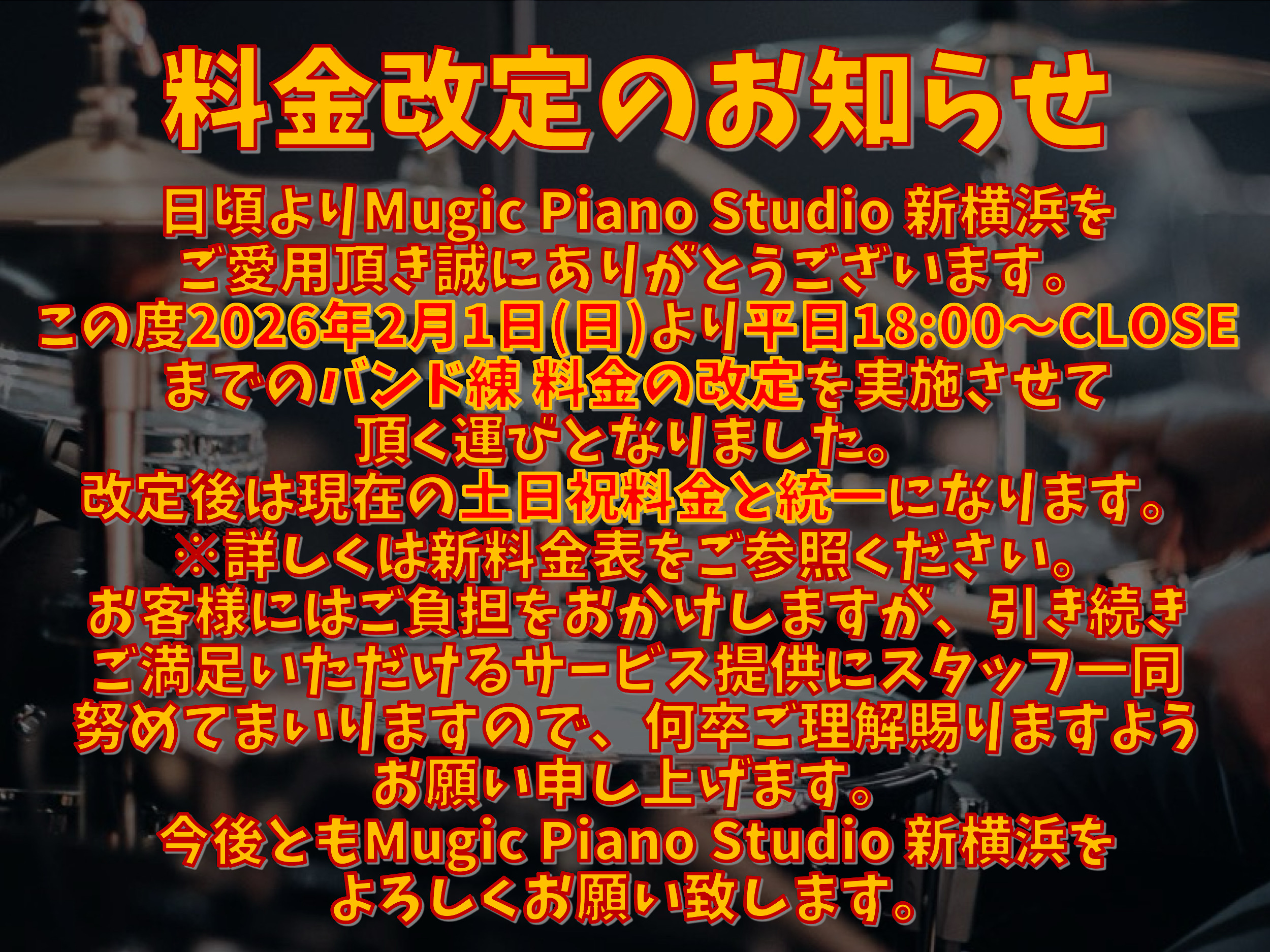 【2026年2月~ 平日 料金改定実施のお知らせ】